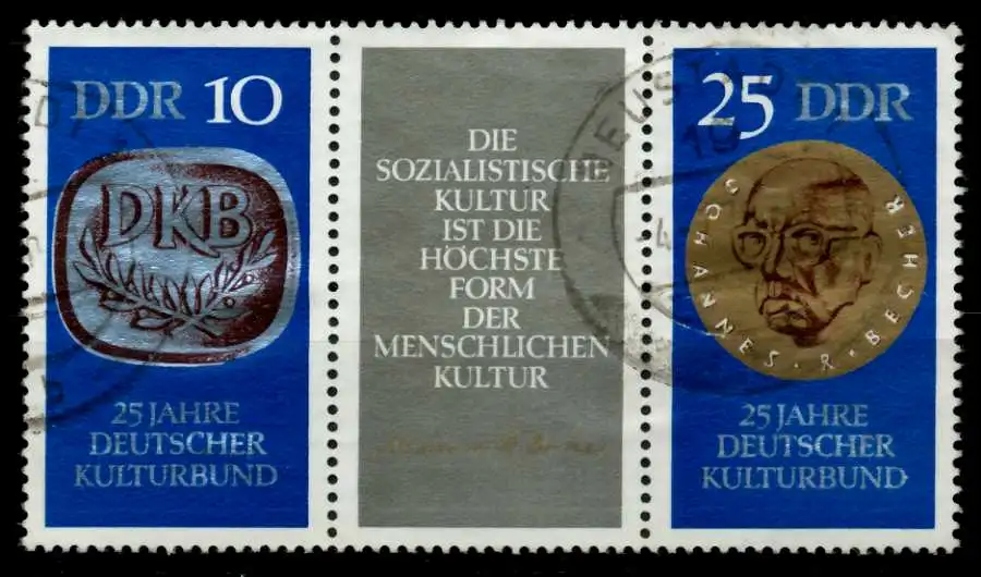 10 + ZF + 25 Zusammendruck-Ausgabe 25 Jahre Deutscher Kulturbund (MichelNr.: 230, 1592, 1593)