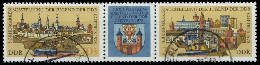 10 + ZF + 20 Ausgabe Briefmarkenausstellung der Jugend in Cottbus Dreierstreifen (MichelNr.: 371, 2343, 2344)