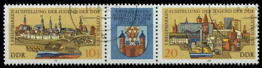 10 + ZF + 20 Ausgabe Briefmarkenausstellung der Jugend in Cottbus Dreierstreifen (MichelNr.: 371, 2343, 2344)