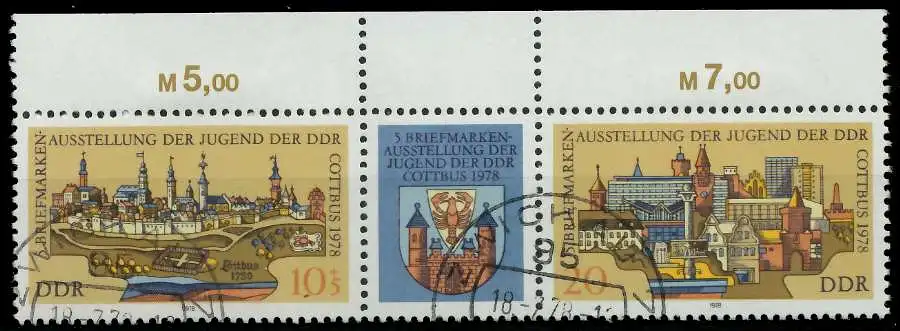 10 + ZF + 20 Ausgabe Briefmarkenausstellung der Jugend in Cottbus Dreierstreifen (MichelNr.: 371, 2343, 2344)