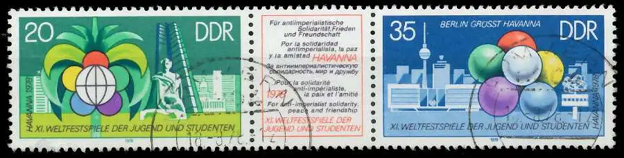 20 + ZF +35 Ausgabe Weltfestspiele der Jugend und Studenten Dreierstreifen (MichelNr.: 377, 2345, 2346)