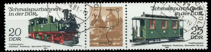 20 + ZF + 25 Zusammendruck aus der 1. Ausgabe Schmalspurbahnen 1980 (MichelNr.: 476, 2562, 2564)