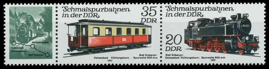 ZF + 35 + 20 Zusammendruck aus der 1. Ausgabe Schmalspurbahnen 1980 (MichelNr.: 484, 2563, 2565)