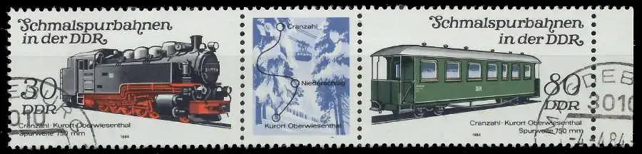 30 + ZF + 80 Zusammendruck aus der Ausgabe Schmalspurbahnen in der DDR, Dreierstreifen (MichelNr.: 577, 2864,2867)