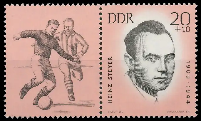 ZF/20+10 Pfg Wert aus der Ausgabe Erhaltung der nationalen Mahn- und Gedenkstätten - Heinz Steyer, mit anhängendem Zierfeld (MichelNr.: 78, 961)