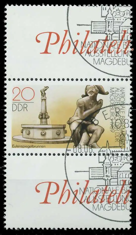 20+5 Pfg Wert aus der Ausgabe Nationale Briefmarkenausstellung Magdeburg jeweils mit Zierfeld oben und unten (MichelNr.: 3265)