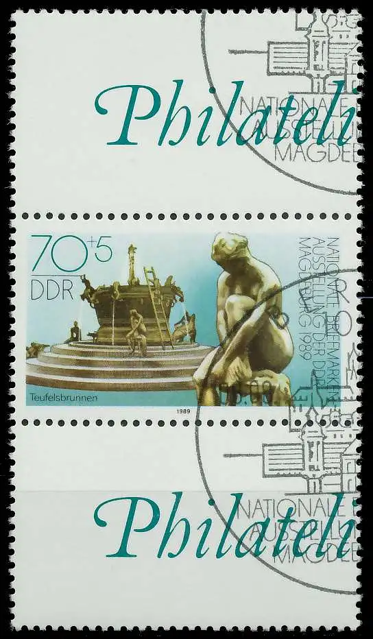 70 Pfg Wert aus der Ausgabe Nationale Briefmarkenausstellung Magdeburg jeweils mit Zierfeld oben und unten (MichelNr.: 3266)