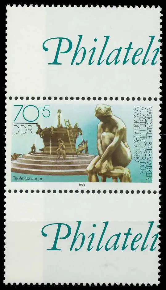 70 Pfg Wert aus der Ausgabe Nationale Briefmarkenausstellung Magdeburg jeweils mit Zierfeld oben und unten (MichelNr.: 3266)