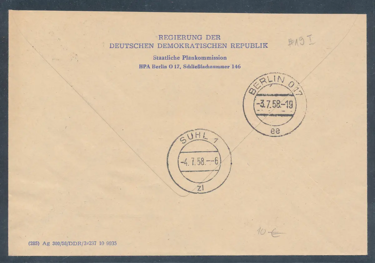 DDR.ZKD-Brief, EF. Mi.-Nr. Dienst-19 I L