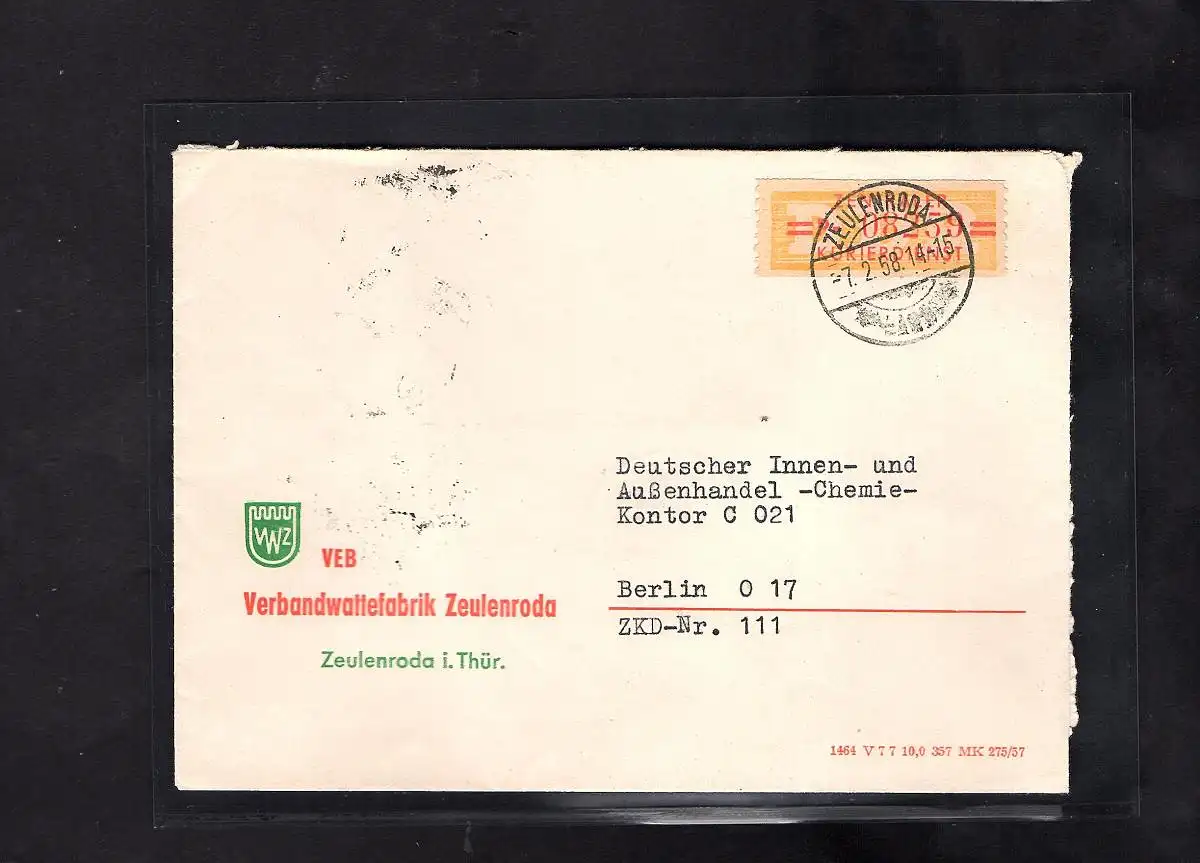 DDR.ZKD-Brief, EF. Mi.-Nr. Dienst-B 17 P
