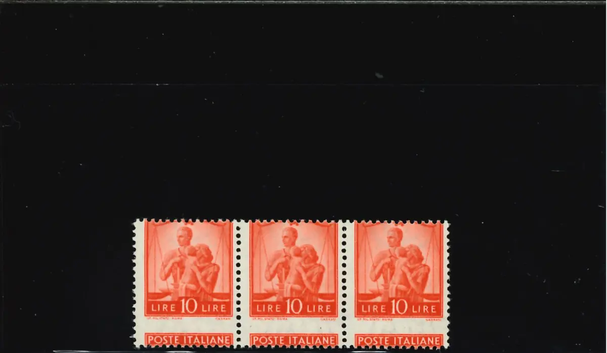 MNH - Vollgummi - DEMOCRATICA 10 L. ORR STRIP. DREI STARK VERSCHOBENE VERZAHNUNG - Kat. euro 375 Cod. ITAV_0721
