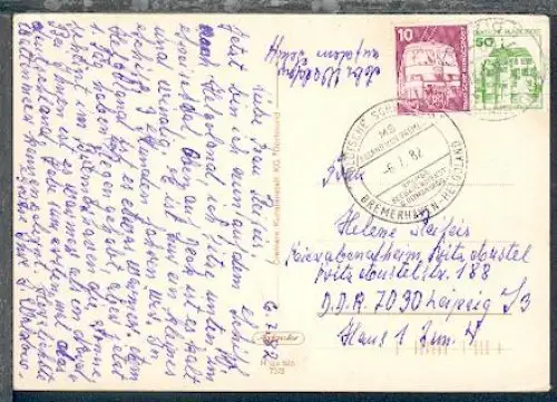 BREMERHAVEN-HELGOLAND 6.7.82 auf CAK(Nordsee-Insel Helgoland) nach Leipzig mit Stempel LEIPZIG NACHTRÄGLICH 10.7.82