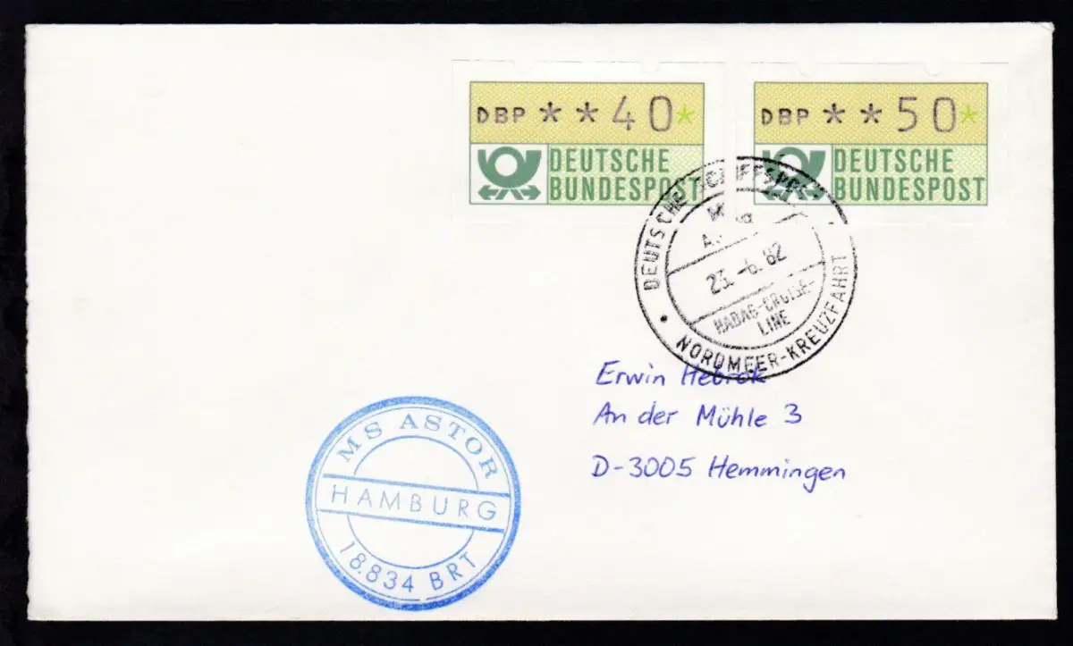 DEUTSCHE SCHIFFSPOST NORDMEER-KREUZFAHRT MS ASTOR HADAG-CRUISE-LINE 23.6.82 +