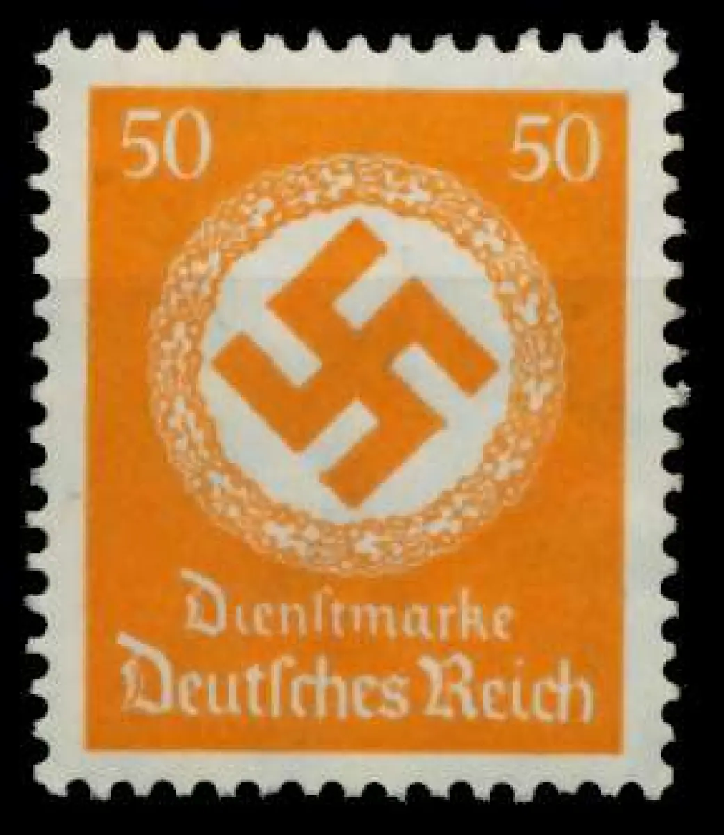 50 Pfg Wert aus der Dienstmarkenausgabe Hakenkreuz im Kreis mit Wasserzeichen Hakenkreuze, senkrechte Gummiriffelung