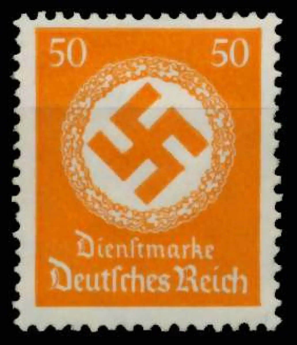 50 Pfg Wert aus der Dienstmarkenausgabe Hakenkreuz im Kreis mit Wasserzeichen Hakenkreuze, senkrechte Gummiriffelung