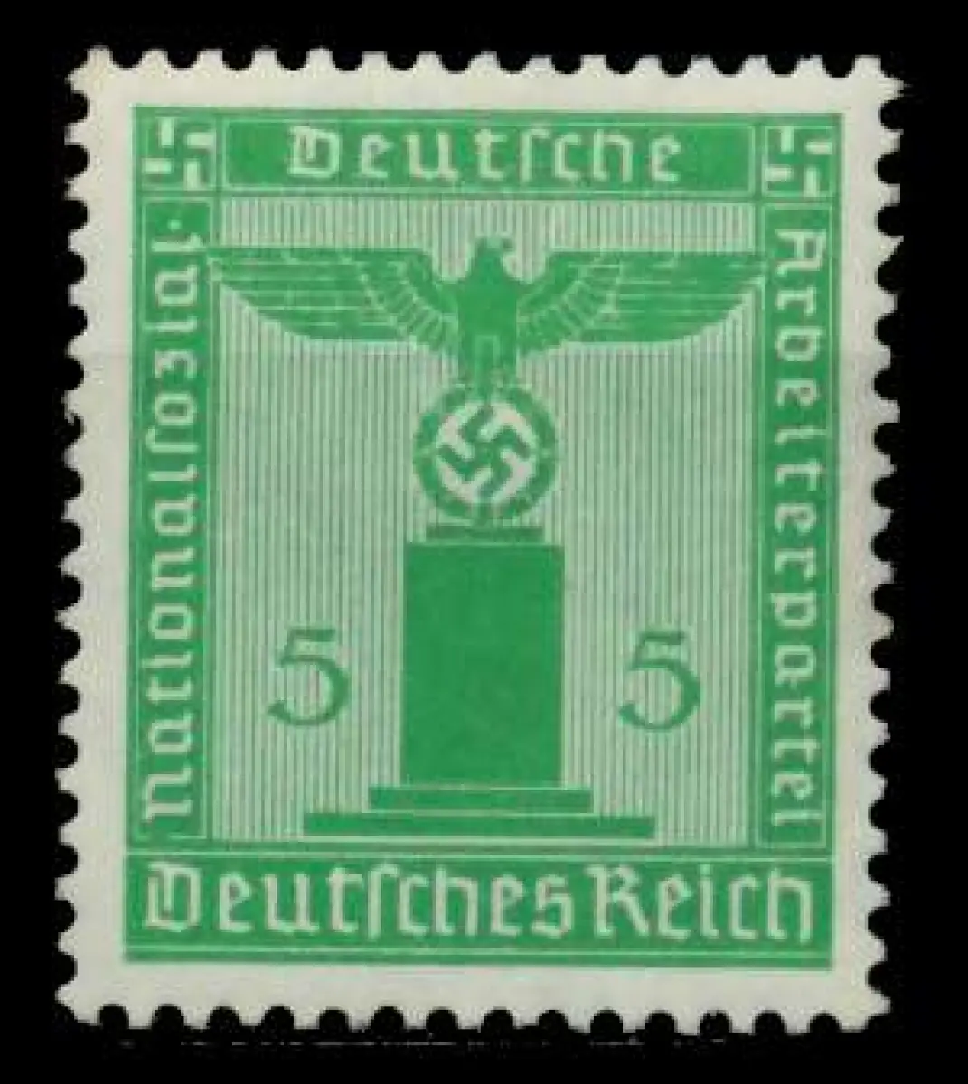 5 Pfg Wert aus der Dienstmarkenausgabe Reichsadler auf Sockel mit Wasserzeichen Hakenkreuze, senkrechte Gummiriffelung