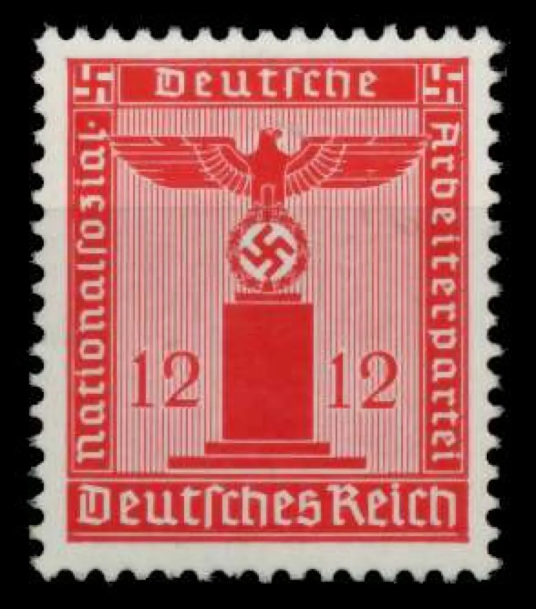12 Pfg Wert aus der Dienstmarkenausgabe Reichsadler auf Sockel ohne Wasserzeichen, senkrechte Gummiriffelung