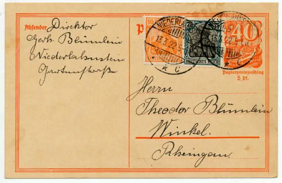 Postkarte P141 mit Zusatzfrankatur (1,25 Mark)