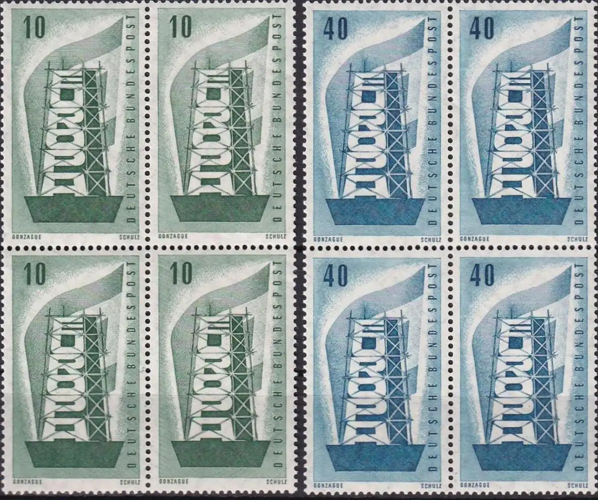 DEUTSCHLAND 1956 Mi-Nr. 241/42 Viererblocks ** MNH - CEPT