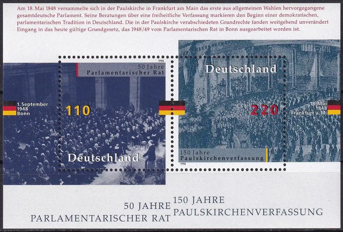 DEUTSCHLAND 1998 Mi-Nr. Block 43 ** MNH