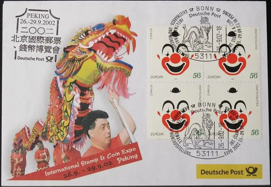 DEUTSCHLAND 2002 Int. Stamp Expo Peking 26.09.2002 Messebrief Deutsche Post