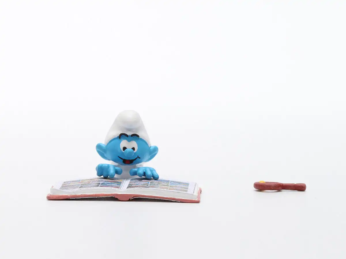DIE SCHLÜMPFE mit einen Koffer voller Comics