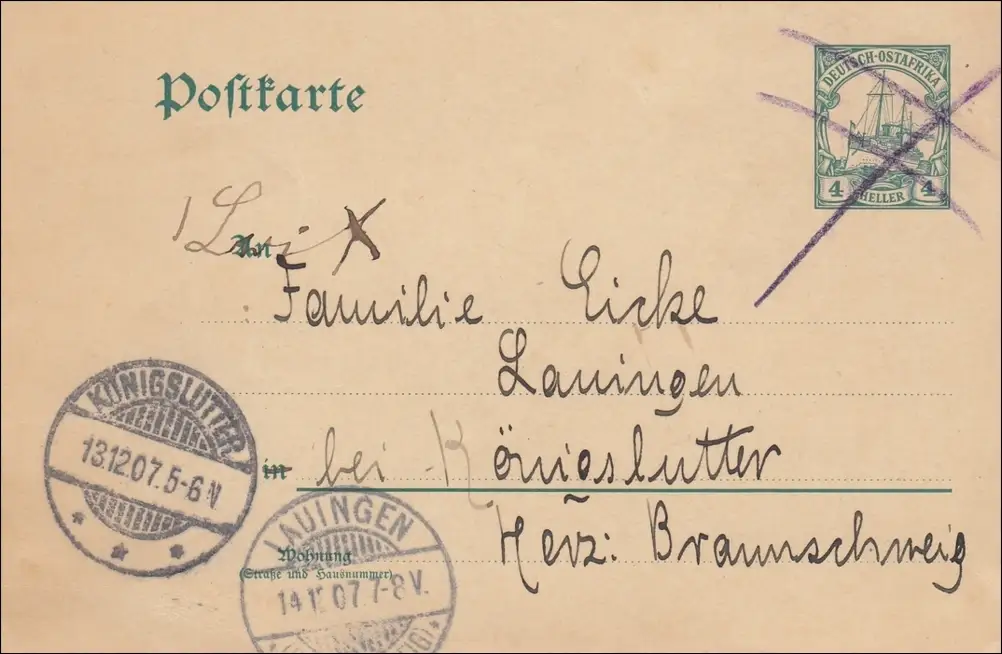 DOA: Ganzsache nach Königslutter und Lauingen 1907