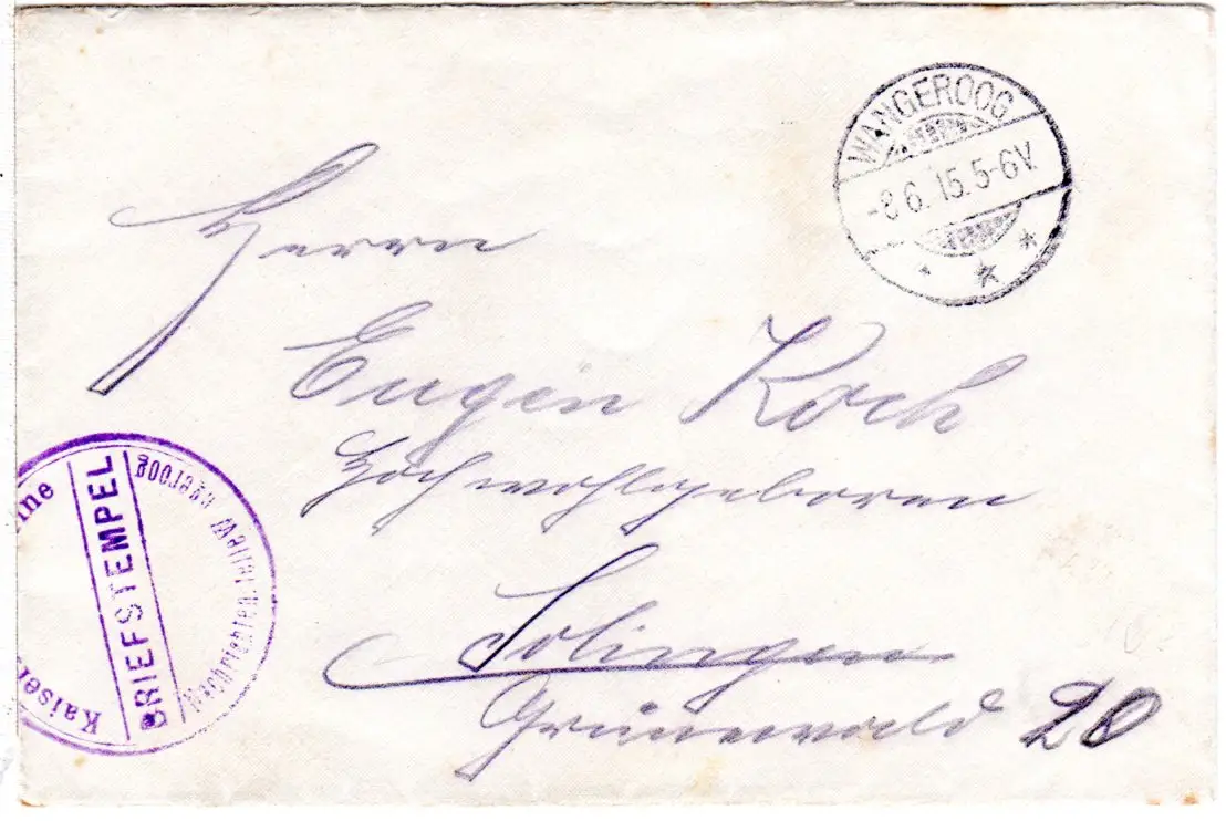 DR 1915, FP Brief der Kaiserl Dt. Marine Nachrichtenstelle Wangeroog n. Solingen