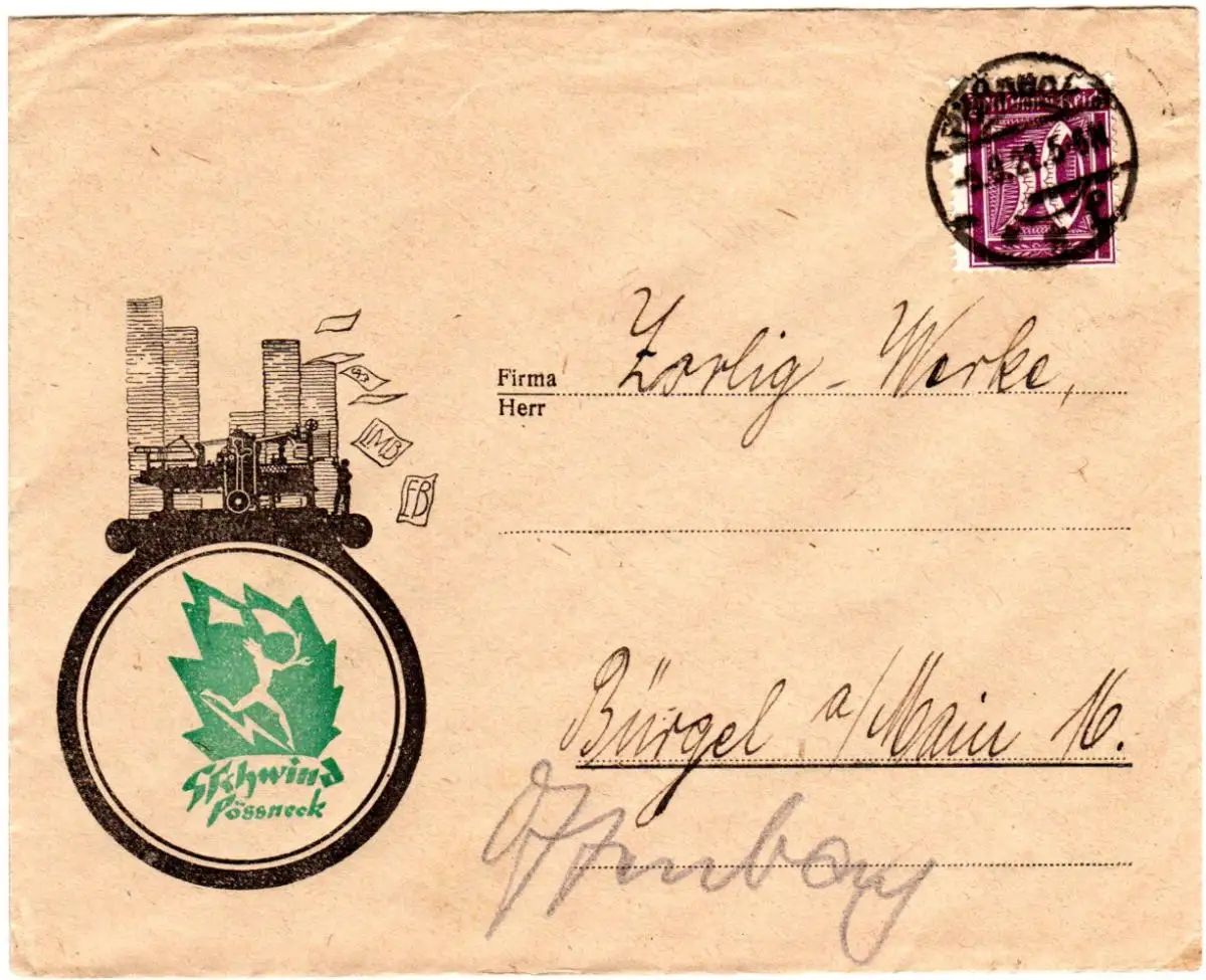 DR 1922, 50 Pf. auf illustriertem Firmenbrief v. Pößneck