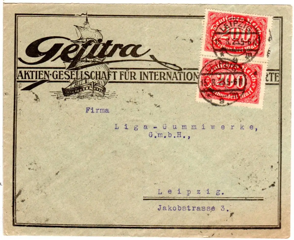 DR 1923, MeF 2x200 Mk. auf Firmen Orts-Brief v. Leipzig