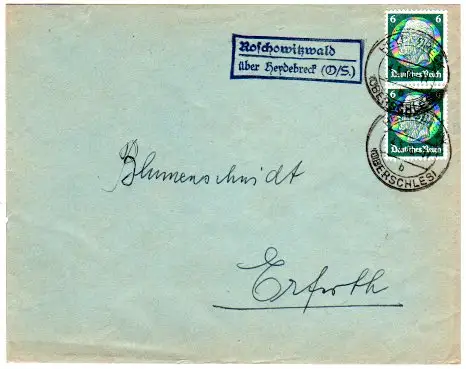 DR 1936, Landpost Stpl. ROSCHOWITZWALD über Heydebreck auf Brief m. 2x6 Pf.