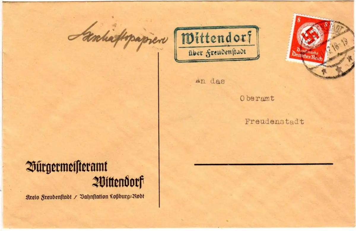 DR 1937, Landpost Stpl. WITTENDORF über Freudenstadt auf Bürgermeister Brief