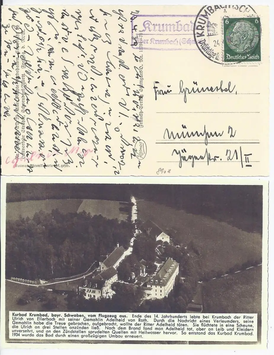 DR 1939, Krumbad über Krumbach, AK m. Landpoststellen-II Stempel. #1043