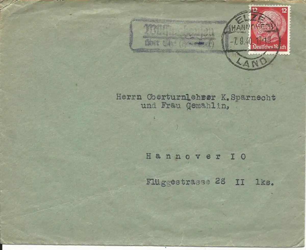 DR 1940, Landpost Stpl. Wülfinghausen über Elze (Hannover) auf Brief m. 12 Pf.