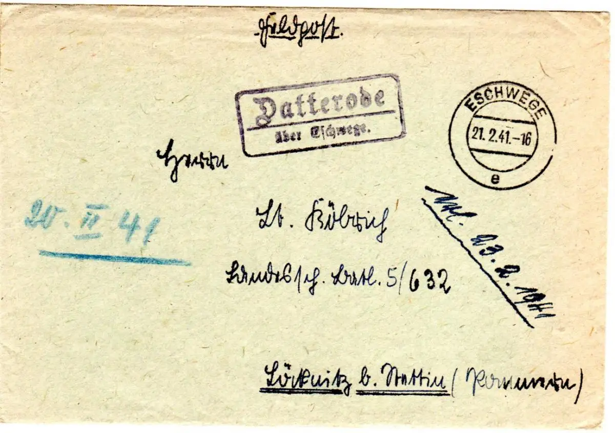 DR 1941, Landpost Stpl. DATTERODE über Eschwege auf Feldpost Brief
