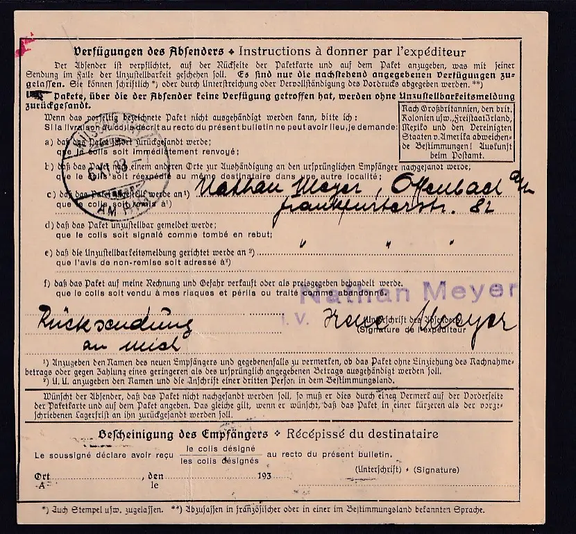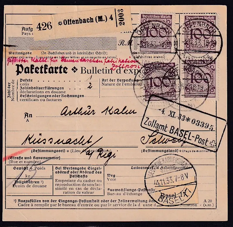 DR., Ausland-Paketkarte aus Offenbach mit MeF. Mi.-Nr. 343