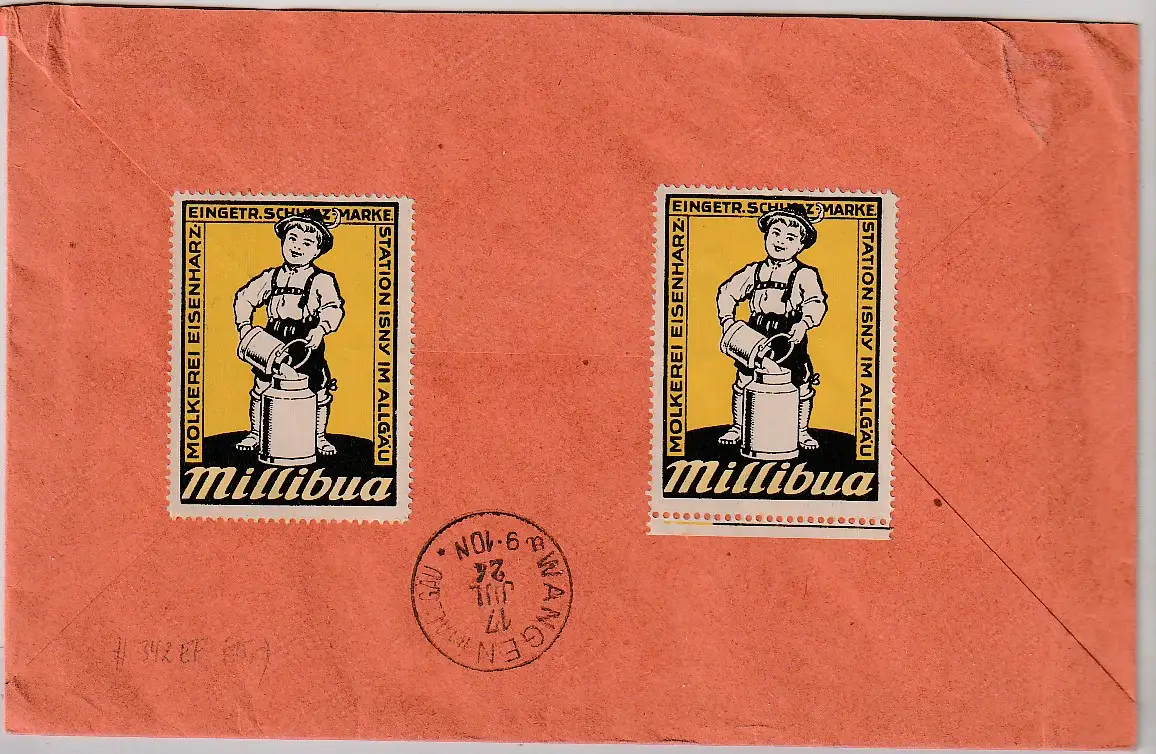 Gute Erhaltung, s. Abbildungen. Rückseitig zwei originelle Werbe-Vignetten "Millibua"). Portorichtig.