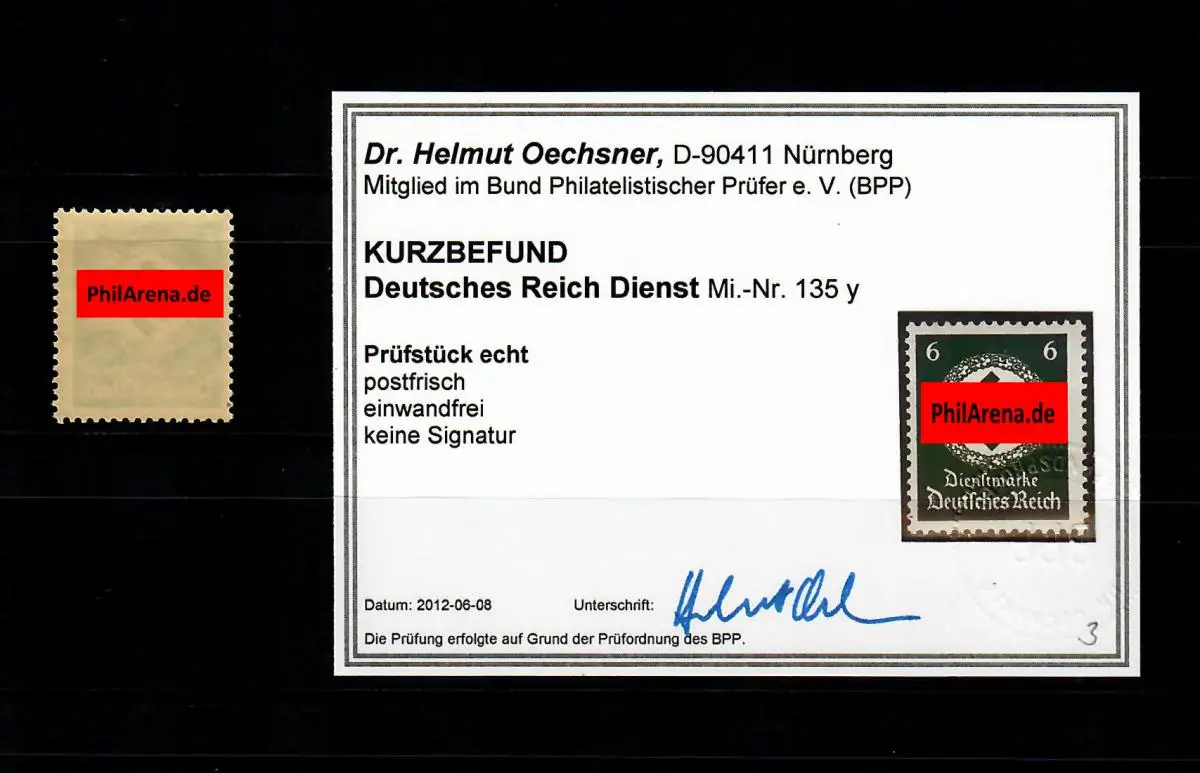 DR: Dienst MiNr. 135 y, postfrisch, **, BPP Befund