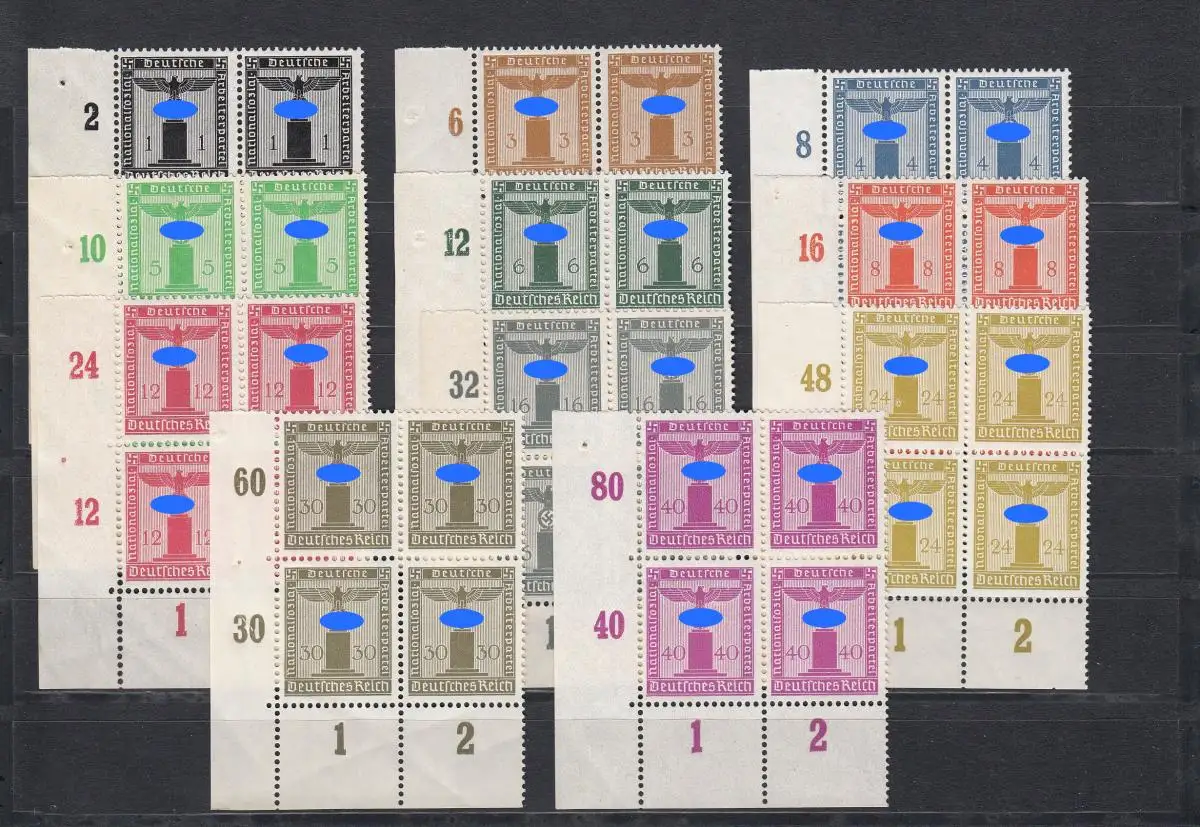 DR: Dienst: MiNr. 144-154, Eckrand-Viererblock VE3, postfrisch