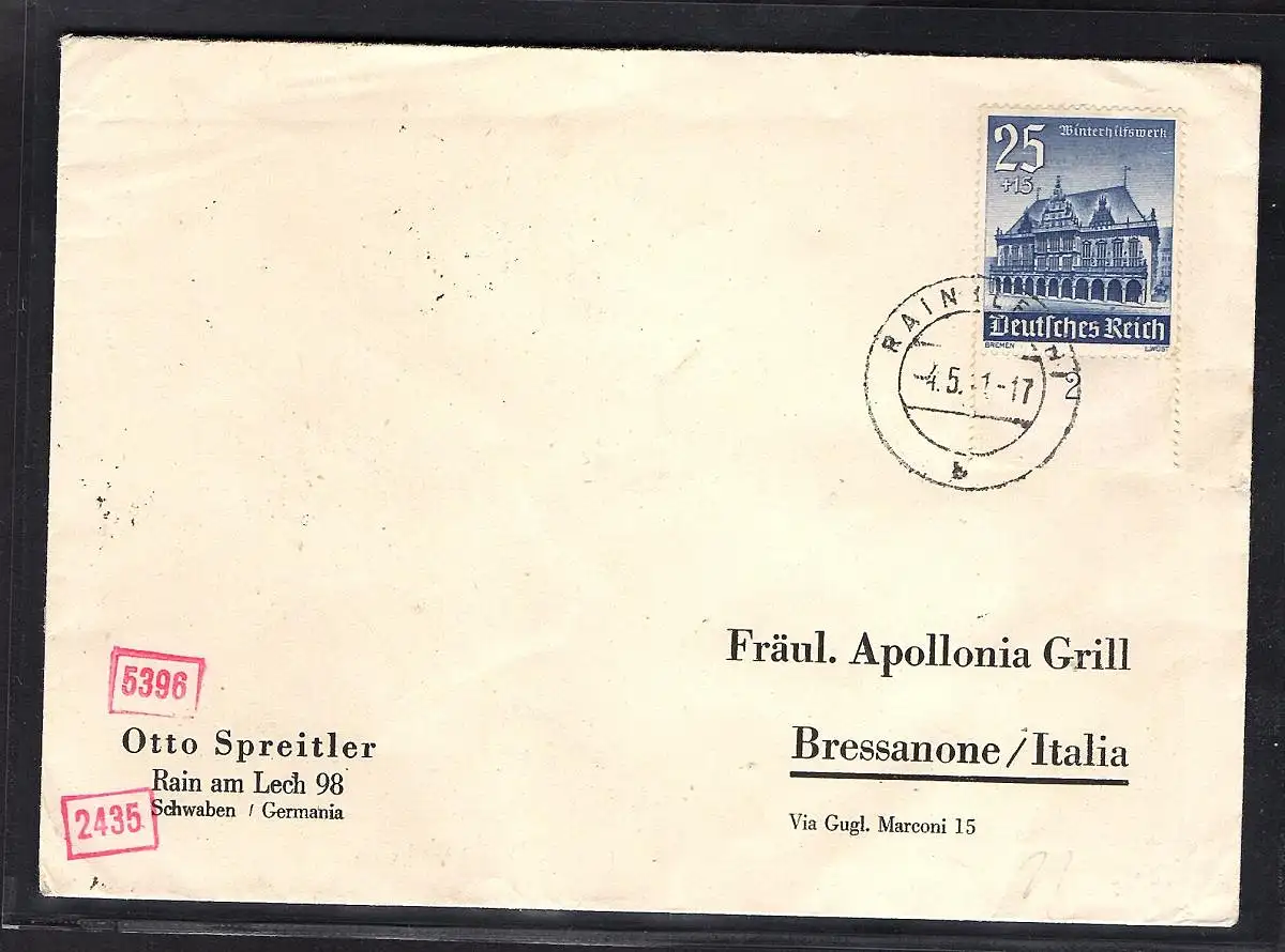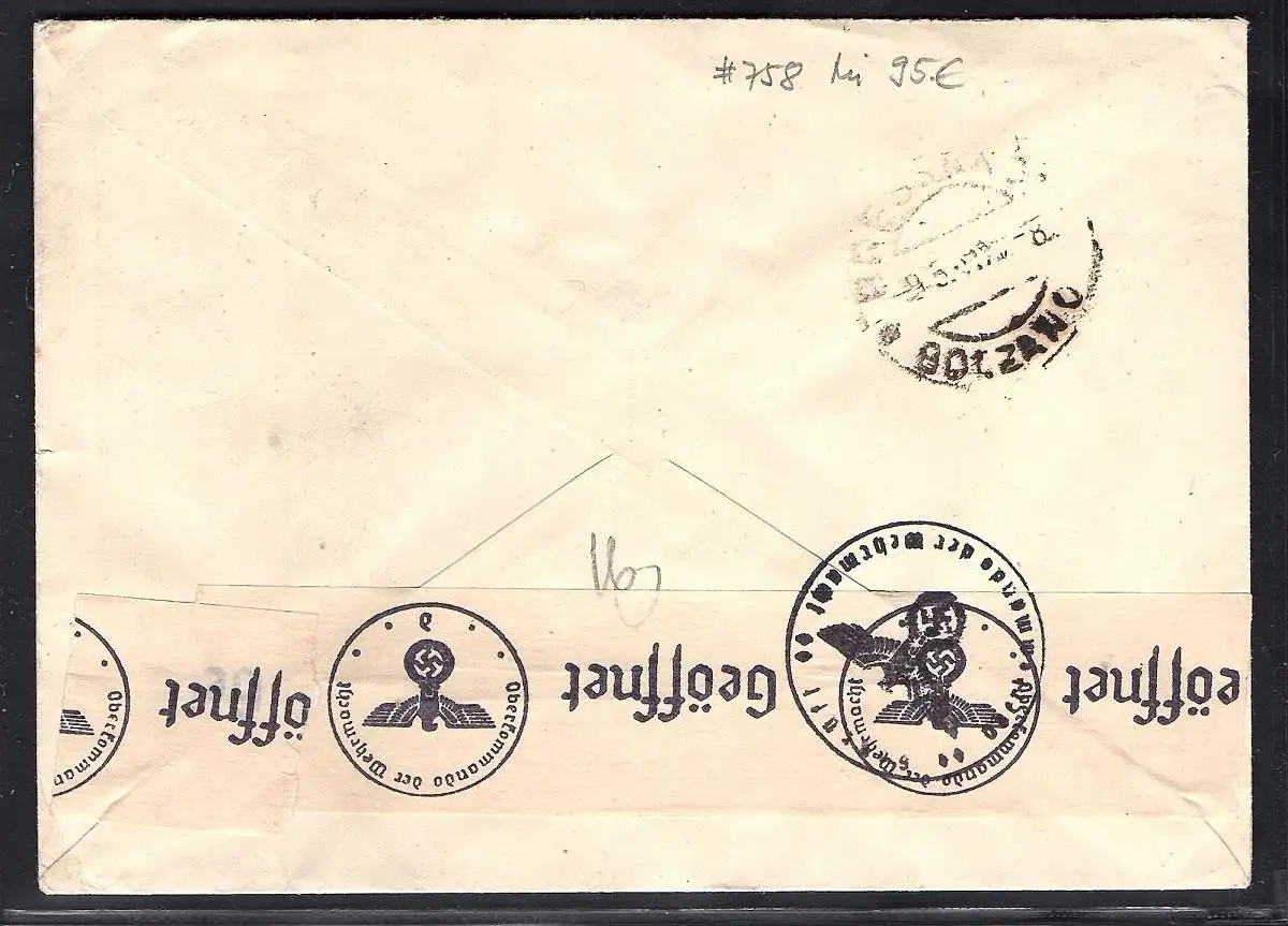 DR., EF. Mi.-Nr. 758 als Ausland-Brief, zensiert.