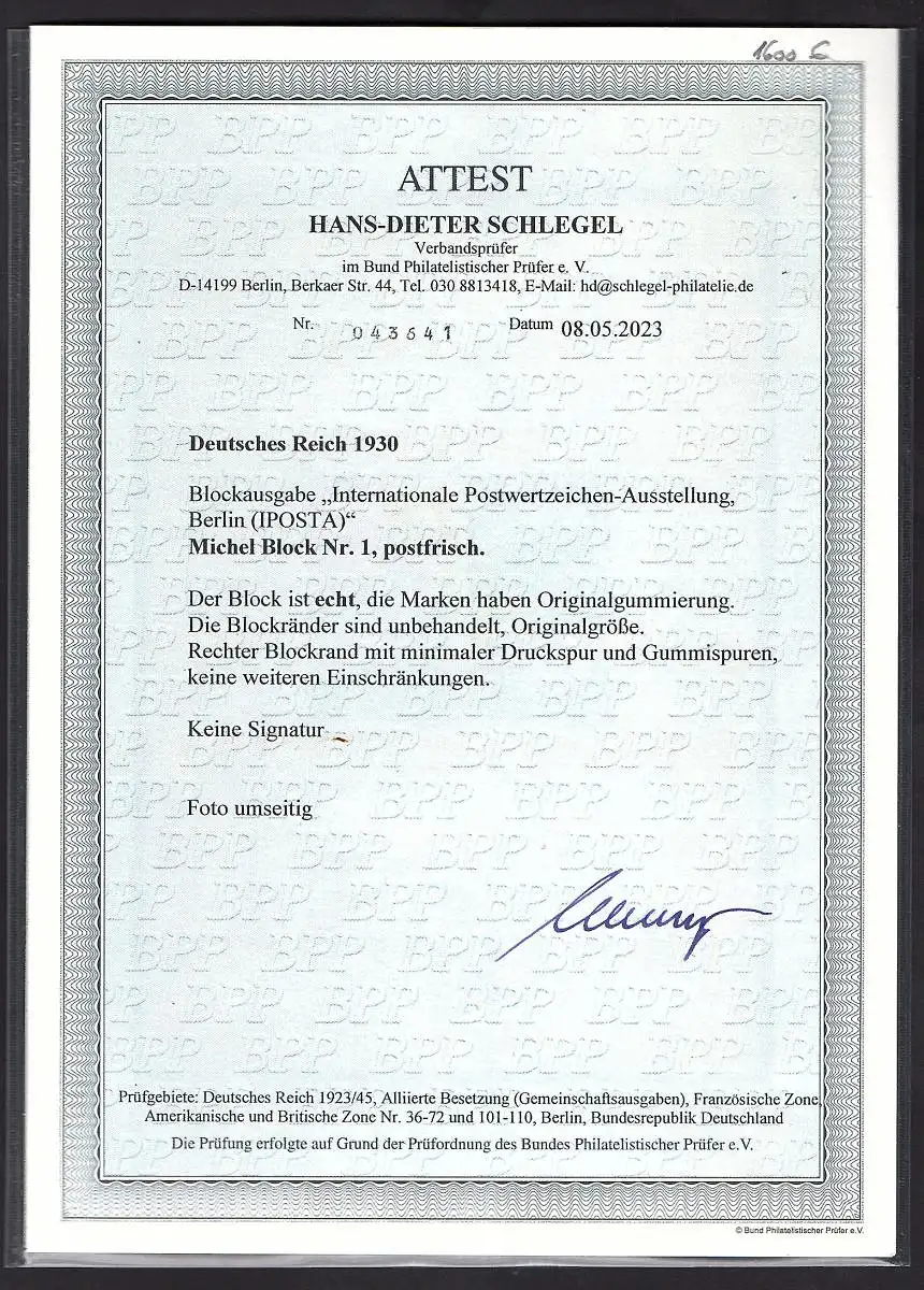 DR., IPOSTA Mi.-Nr. Block 1 postfrisch, FA. SchlegelBPP.