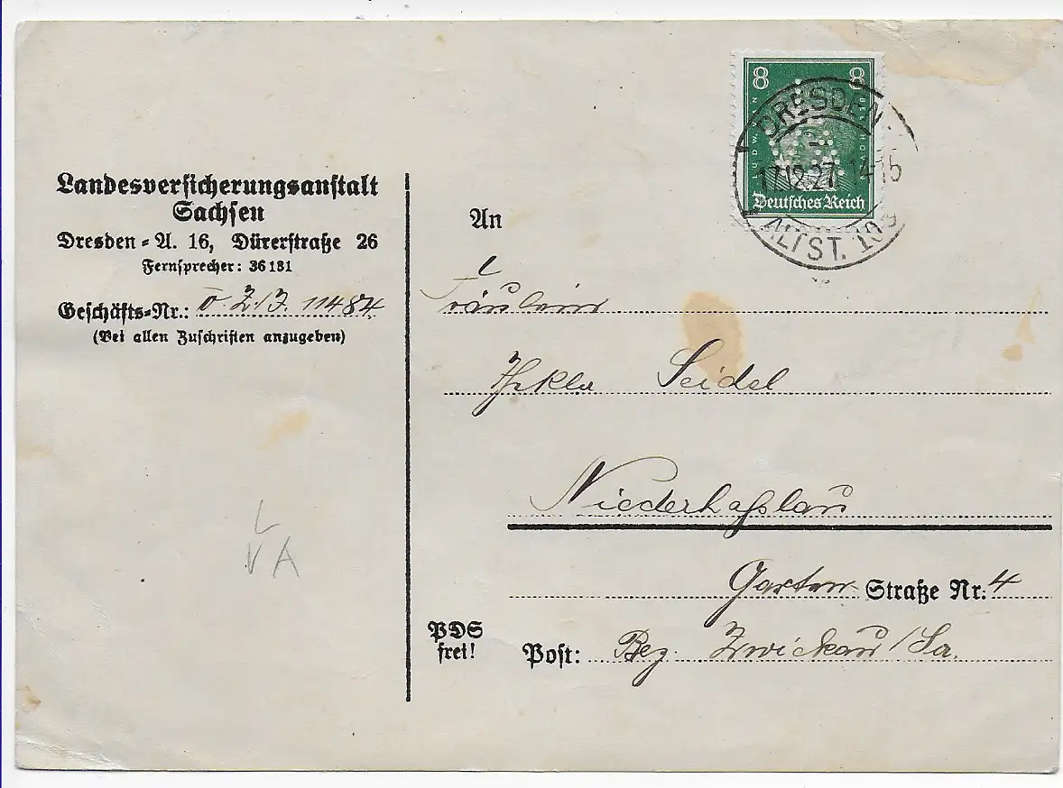 DR: Landesversicherungsanstalt 1927, Perfin, Lochung L/VA