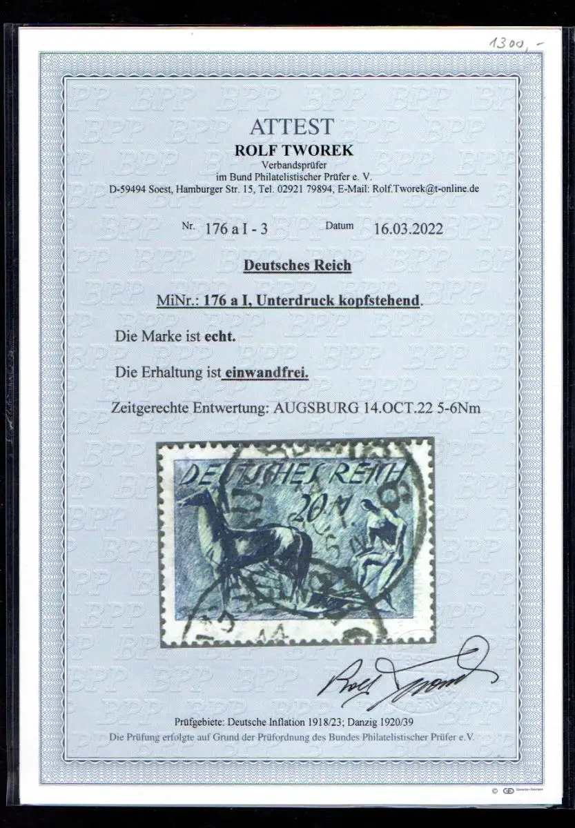 DR. Mi.-Nr. 176 a I gestempelt, FA. TworekBPP.