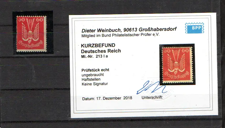 DR., Mi.-Nr. 213 Ia, ungebraucht, Kurzbefund WeinbuchBPP.