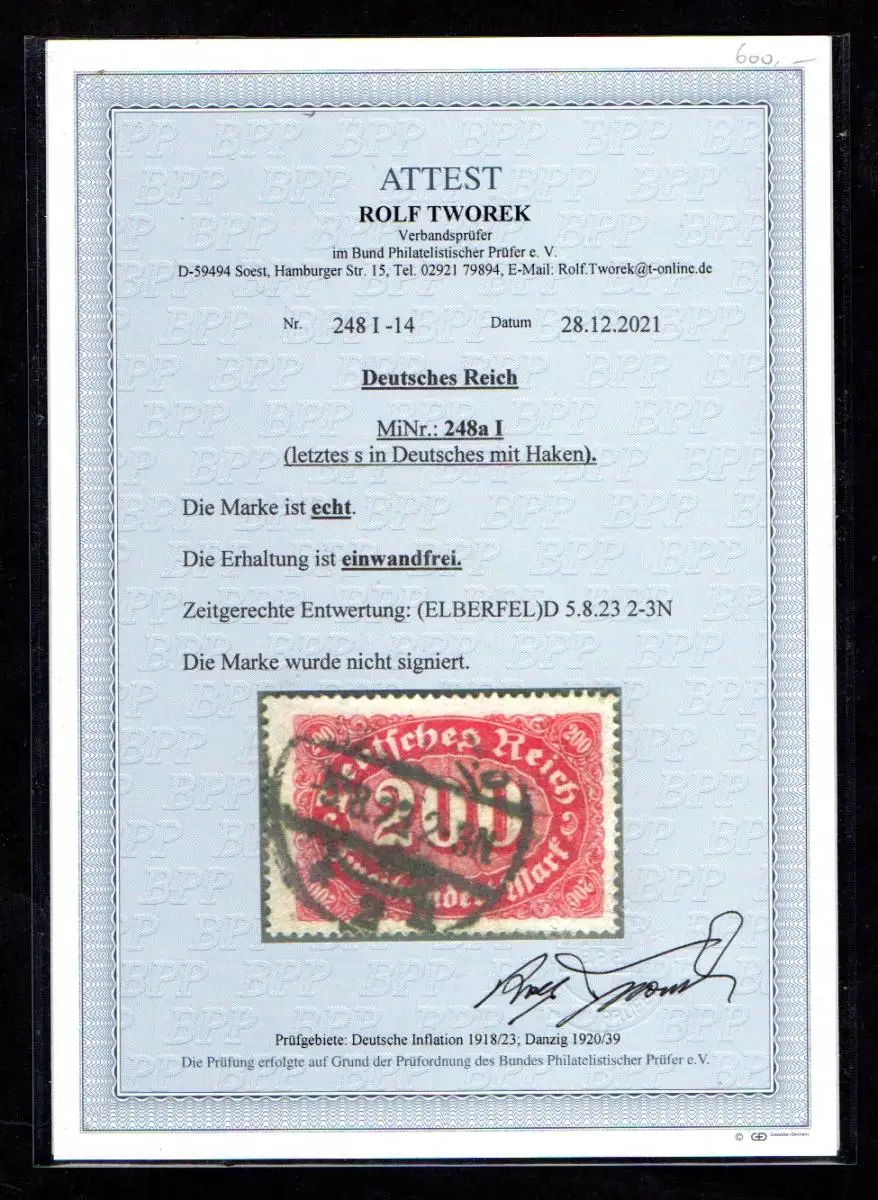DR., Mi.-Nr. 248 aI gestempelt, FA. TworekBPP.