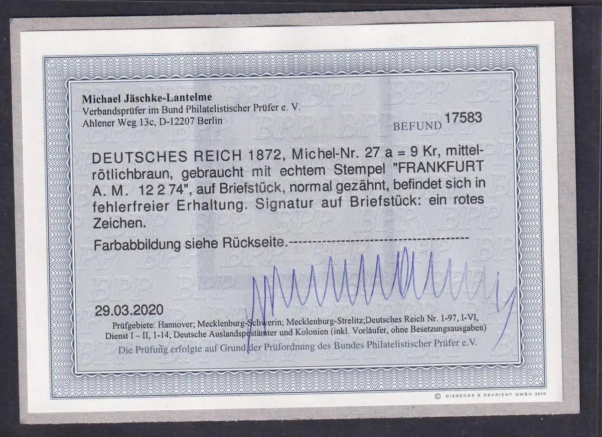 DR., Mi.-Nr. 27 a gestempelt, Befund J-LantelmeBPP