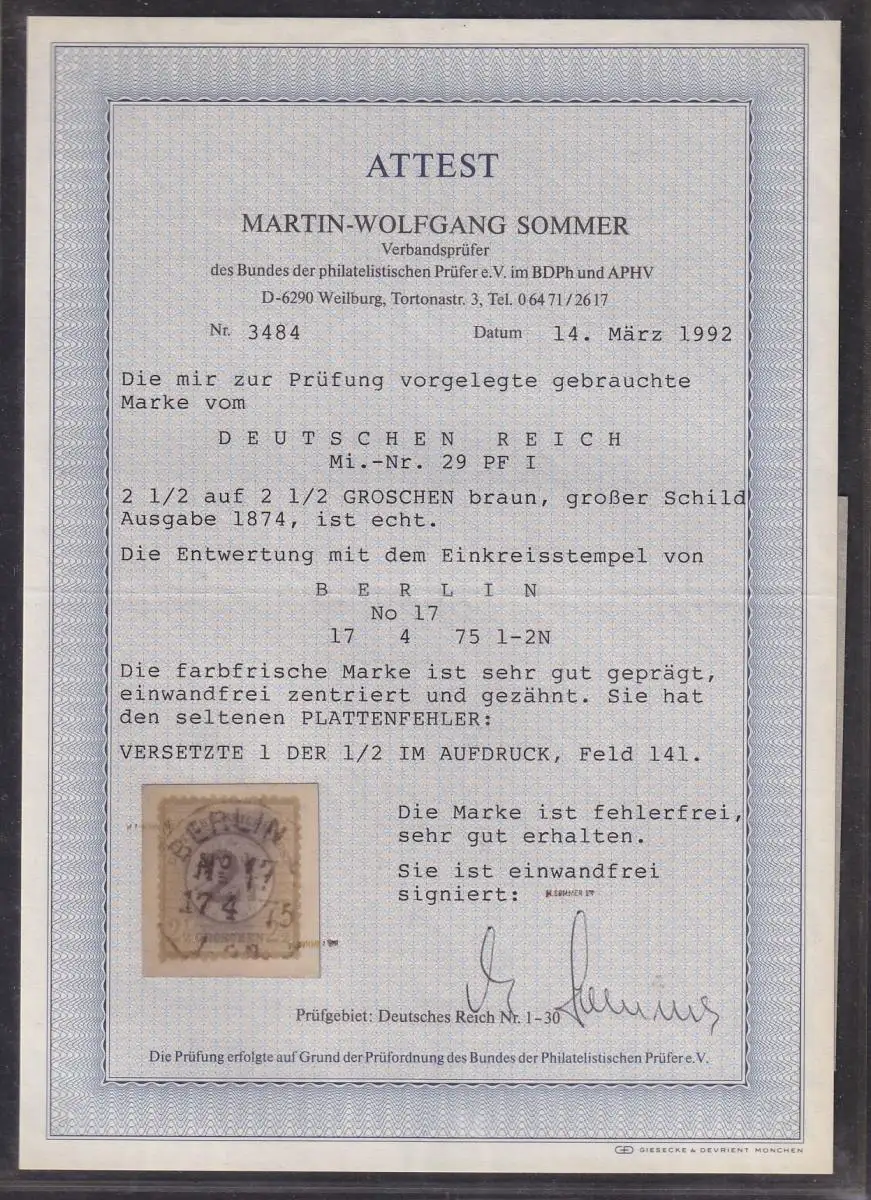 DR, Mi.-Nr. 29 PF I b, gestempelt, FA. SommerBPP