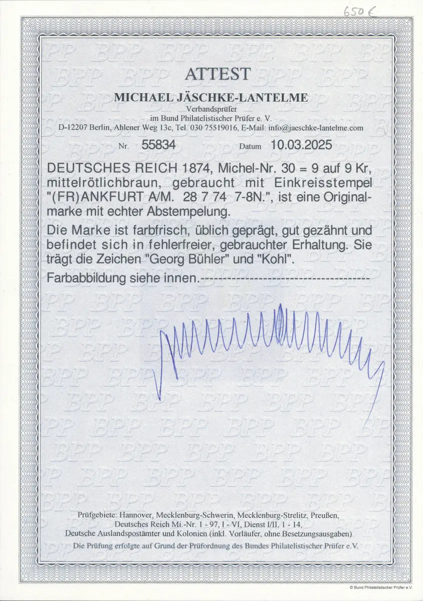 Ein Angebot in Briefmarken Deutsches Reich 1872-1874 - 1.255 weitere Angebote in dieser Kategorie