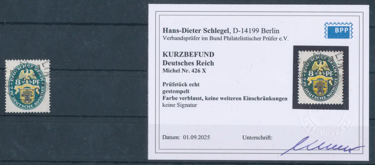 DR. Mi.-Nr. 426 X gestempelt, KB. Schlegel.