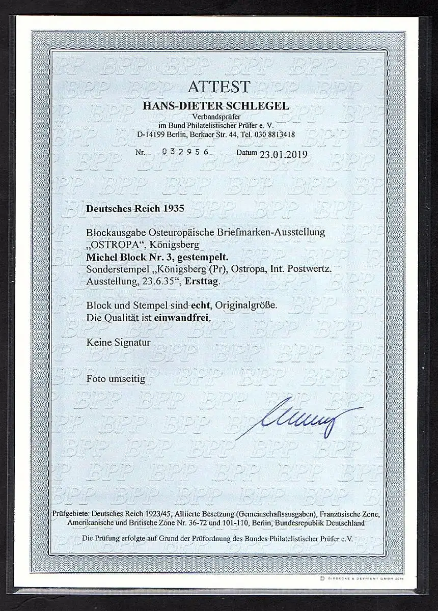 DR., Mi.-Nr. Block 3 gestempelt mit ESST. FA. SchlegelBPP.